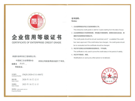 AAA級企業(yè)信用(中國施工企業(yè)管理協(xié)會)