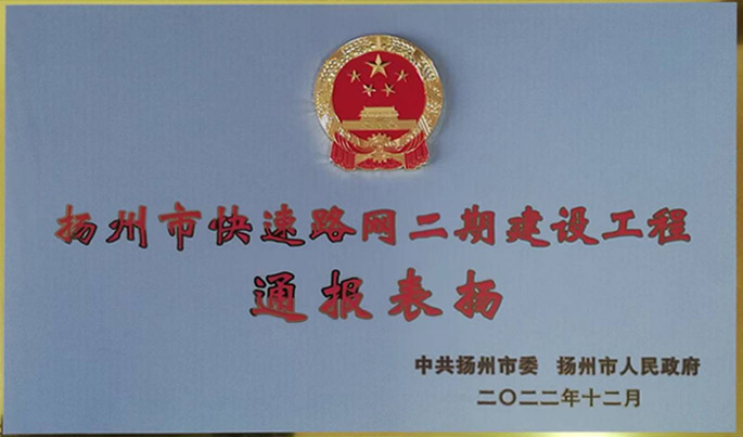 揚州市快速路網(wǎng)二期建設工程 - 通報表揚