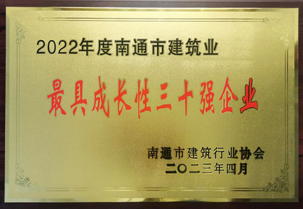 2022年度南通市建筑業(yè)最具成長性三十強企業(yè)